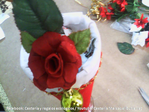 Rellenamos alrededor del palo, con flores de las que tengas, en este caso las hice con cartones de huevos, si ves entre mis trabajos anteriores, encontrarás el paso a paso para hacerlas...
