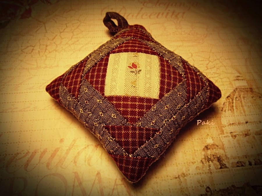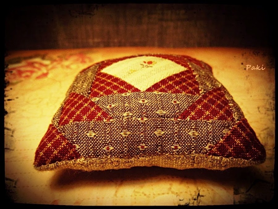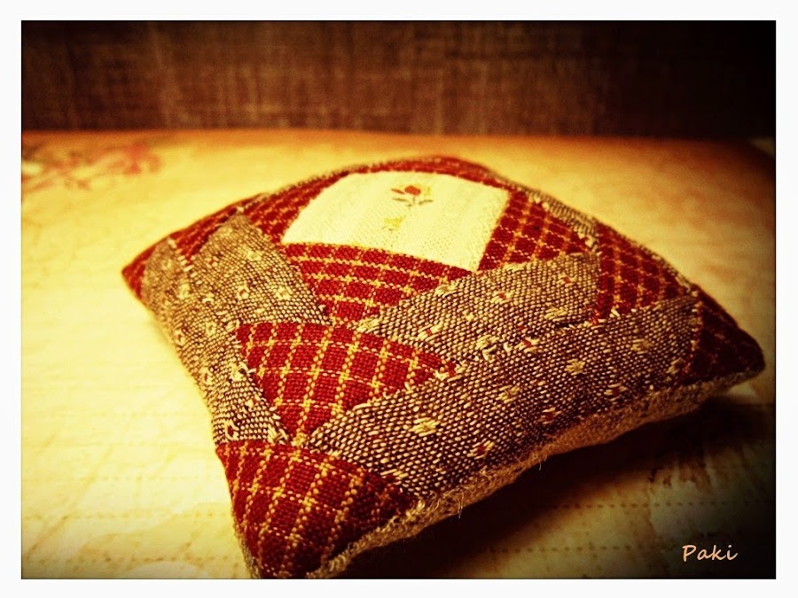 En esta entrada os voy a enseñar tres detalles, inspirados en Japón, que completaran mi bolsa de patchwork ( la tengo medio embastada y en cuanto la acabe os la enseñaré ). En la entrada anterior ya os mostré la agenda y en ésta vais a poder ver: el libro guarda agujas, el acerico y el guarda dedal.