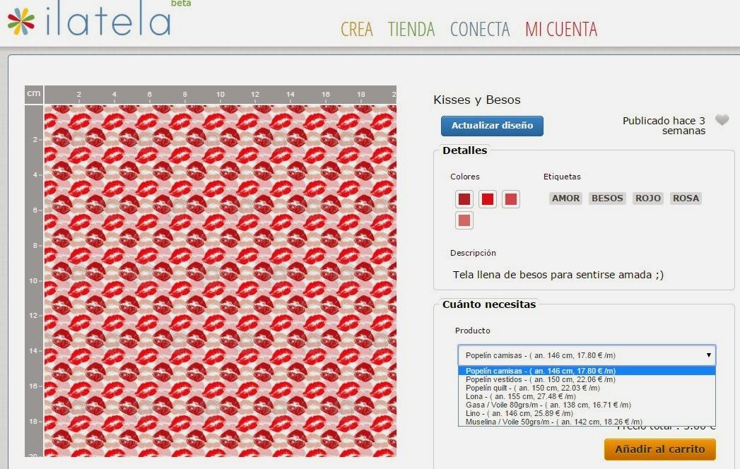 A parte de diseñar tu tela la puedes poner a la venta... a mi me ha gustado tanto...que os invito a que os sentáis queridas por vuestras prendas... a comprar tela de besos se ha dicho1