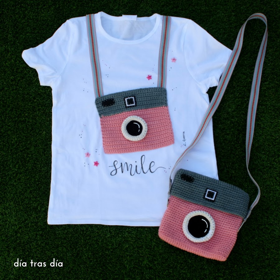 De repente, un día cotilleando cosas por la red, vi una imagen de un bolsito de crochet que me encantó y que pensé que a Nora le podría gustar. Así que decidí hacerle un bolsito en ese estilo, con forma de cámara de fotos.