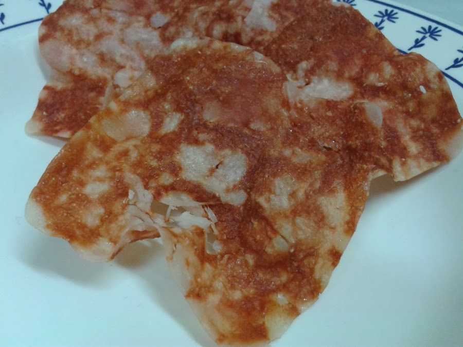 Antes que nada os pongo cómo hice los crujientes de pechuga de pavo, y me vino la inspiración de los chips de surimi que vi en internet el otro día, que otra noche los haré para probar qué tal están.