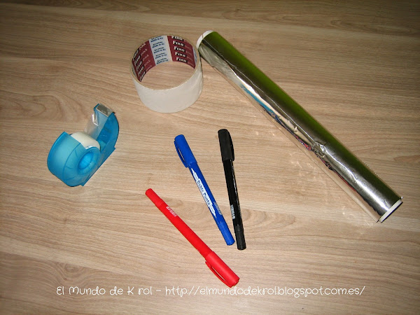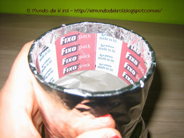 Con un poco de celo sujetamos el rollo al papel de aluminio y lo enrollamos.