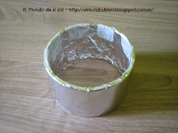 Con un poquito de celo pegamos el aluminio para que no se despegue sobre el filo del rollo