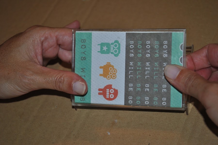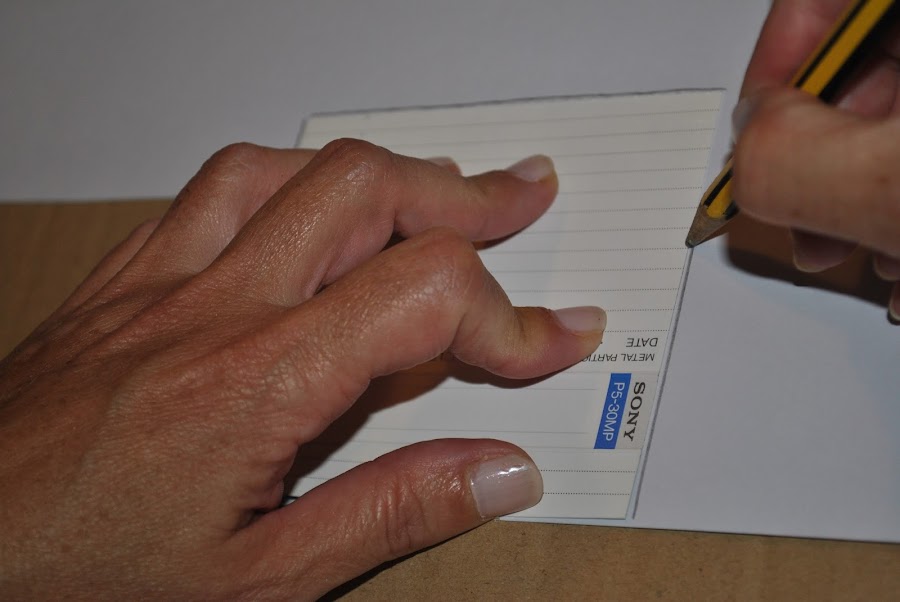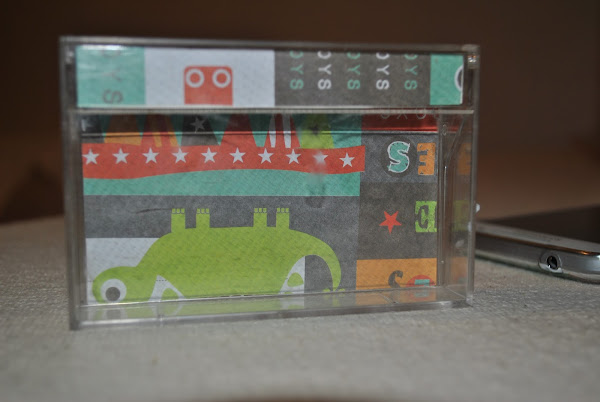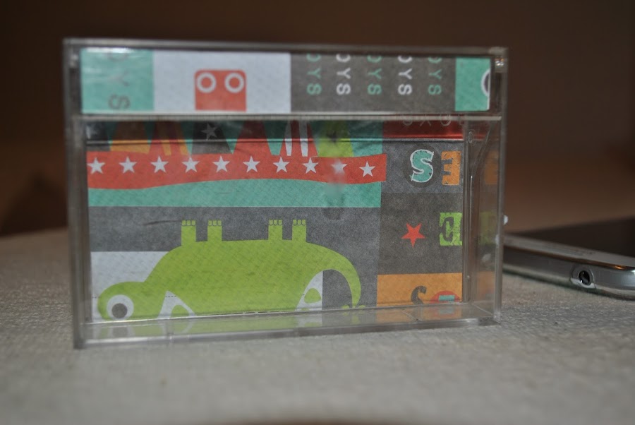 Sacamos la carátula del casette y tomamos la plantilla en nuestro papel decorativo.