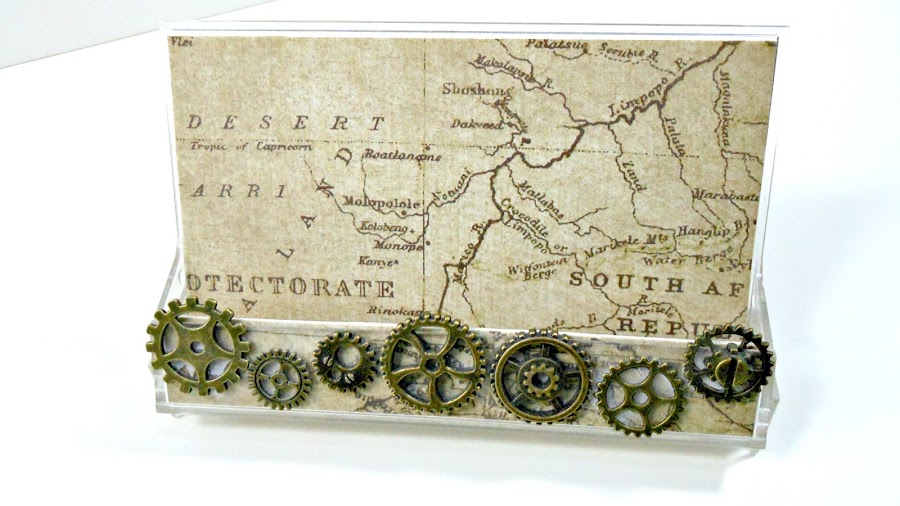 Puedes decorarlo de muchas maneras y con diversos materiales. Yo utilicé lo que tenía en casa, por lo que cogí un papel con diseños de mapas y unos engranajes metálicos y ya tenía mi soporte, que por cierto, me es muy útil para tener mi móvil en el escritorio y estar pendiente de llamadas o mensajes de manera fácil y sin que se me pierda el móvil en la montaña de papeles de mi escritorio.