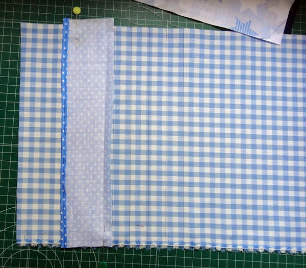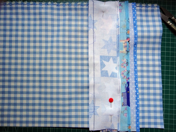 Pasamos un pespunte para coser este primer bolsillo, dejando un margen de 1cm, y hacemos lo mismo con los bolsillos siguientes, poniendo cada uno sobre una línea.