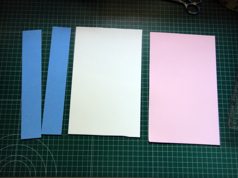 -Plástico rígido, goma eva o similar (yo he utilizado goma eva): 2 tiras de 4x23 cm y dos de 14,5x23 cm. Lo ideal es que fueran todas blancas, pero como veis en esto también he utilizado restos que había en casa.