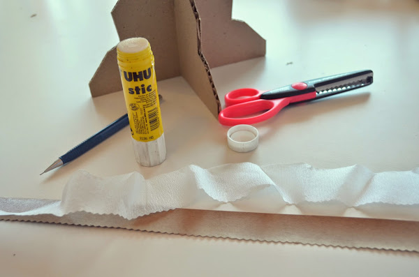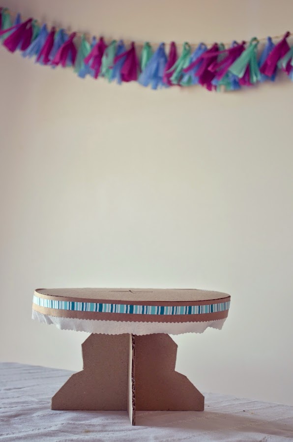 Como terminación, con papel misionero (papel madera) se hará una guarda para cubrir el perímetro de la bandeja. Esta es la parte que puede ir cambiando para cada torta, decorándola con papeles o cintas de distintos colores según la temática. Esta guarda es lo único que necesita pegamento.