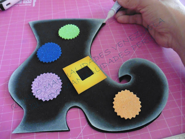 Pegamos los circulitos que adornan la botica así como la hebilla de la misma.