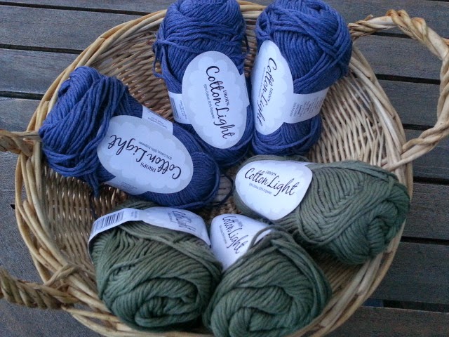 * Gracias a Mucho más que lanas un lote compuesto por 3 ovillos Drops Cotton Light azul denim y 3 ovillos Drops Cotton Light en kaki