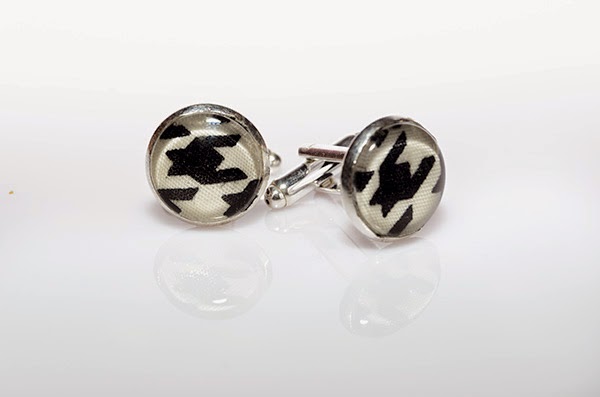 No queremos que nadie se quede fuera, así que hemos incluido un poco de todo. En primer lugar, para que los chicos no se sientan desplazados, tenemos estos gemelos, hechos con cristal sobre una tela chulísima que compramos en Inglaterra...
