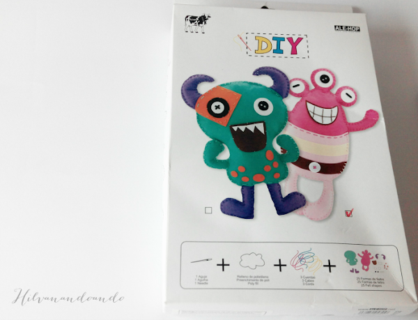 Un kit completo para coser un muñeco mostruito, con aguja, hilo, fieltro y relleno.
