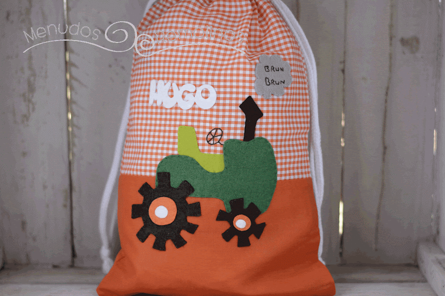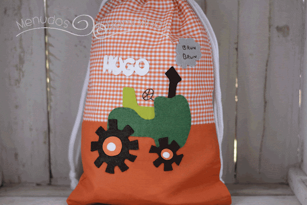 - Una mini bolsa de merienda modelo tractor que personalizaré con el nombre que elijáis.