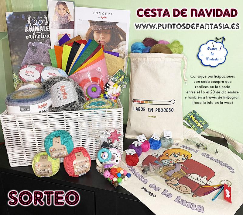 El contenido de la Cesta de Navidad es variadito con materiales de la tienda: lanas, agujas, libros, revistas de patrones, silicona alimentaria, fieltro, lana para fieltrar… todo ello valorado en más de 140€.1 ovillo de Katia Kaleido (ver)