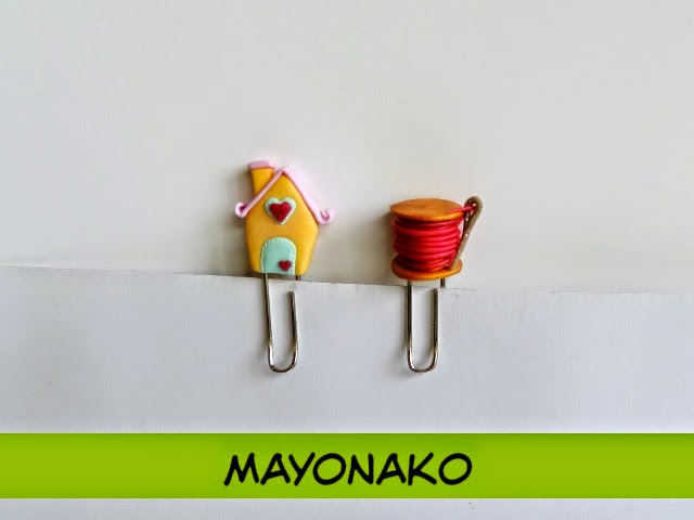 Mayonako: ha creado especialmente para mí estos 2 Xuliclips, una casita para morirse de amor y un carrete de hilo con aguja.