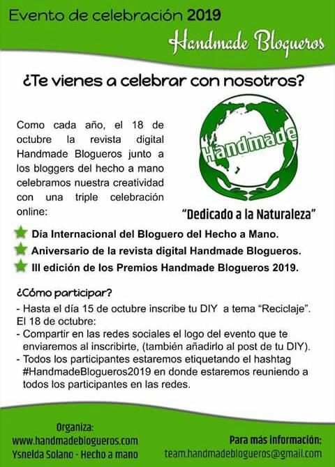 Seguro que sabéis y si no yo os lo recuerdo, que el 18 es el Día del Bloguero del Hecho a Mano, nuestro día! Y qué mejor que celebrarlo, como hemos hecho en las dos ediciones anteriores que con una bonita Fiesta!