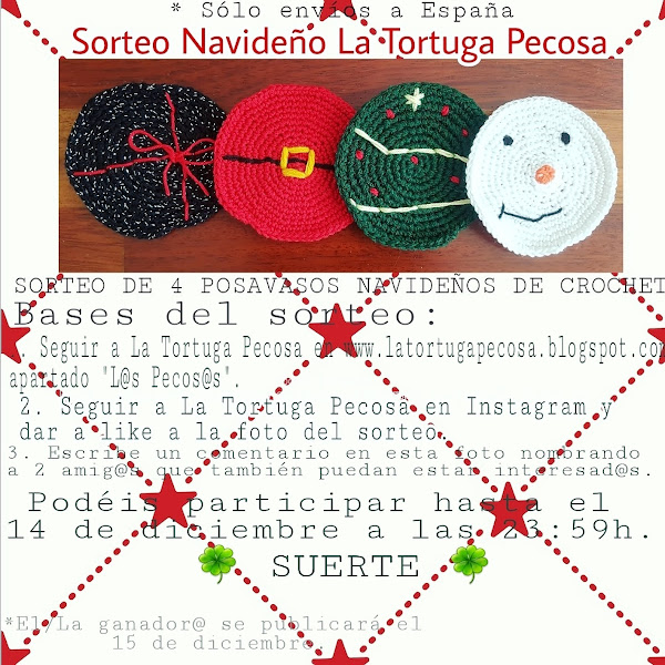 Hasta el 14 de diciembre de 2018 a las 23.59h os podéis apuntar a este supersorteo de 4 posavasos de crochet que...os explicaré cómo los hice en otro post.