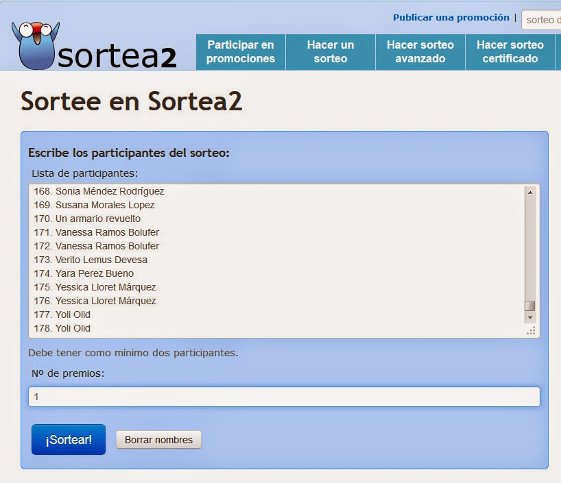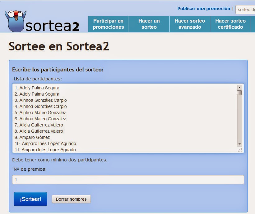 La lista definitiva de participantes, ya sabéis que quienes hayáis compartido, (de forma pública recordar. No vale quien comparta sólo entre sus amigos porque yo no puedo ver si lo habéis hecho), tenéis doble participación, es la siguiente: