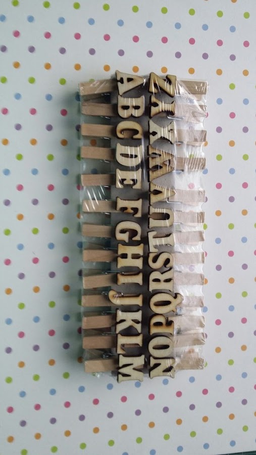 - 1 set de 26 mini pinza decoradas con el abecedario