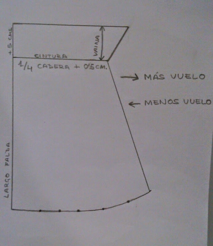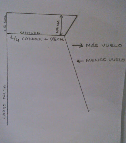 Pues bien, una vez que os habéis decidido por el modelo de falda, según los dos patrones que os dejo, el paso siguiente es trazarlo en la tela.