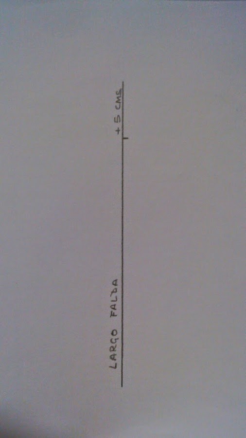 - Arriba de la línea vertical de la cintura, que acabamos de dibujar, trazamos otra paralela a una distancia de 5 cms. que se corresponde con la vuelta interna de la vaina, tal y como veis en la foto.