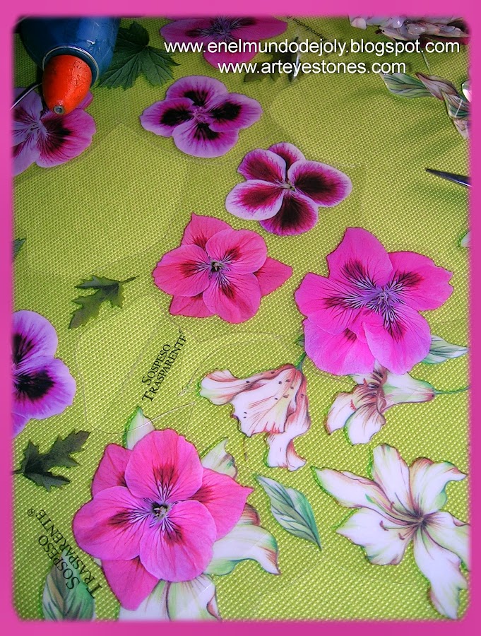 Compre dos láminas de sopeso transparente en la feria para probarlas, ambas con diferentes tipos de flores para combinarlas. Son laminas de plástico transparente con el dibujo impreso. La cualidad de este plástico es que es modelable...es un poco duro, del estilo de los separadores de las carpetas...
