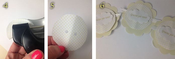 4- Doblamos los círculos a la mitad y perforamos, como vemos en la imagen 4 y 5.