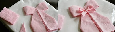 Abrimos nuestra servilleta , ponemos el moñito hecho con la cinta en el medio para adornar.