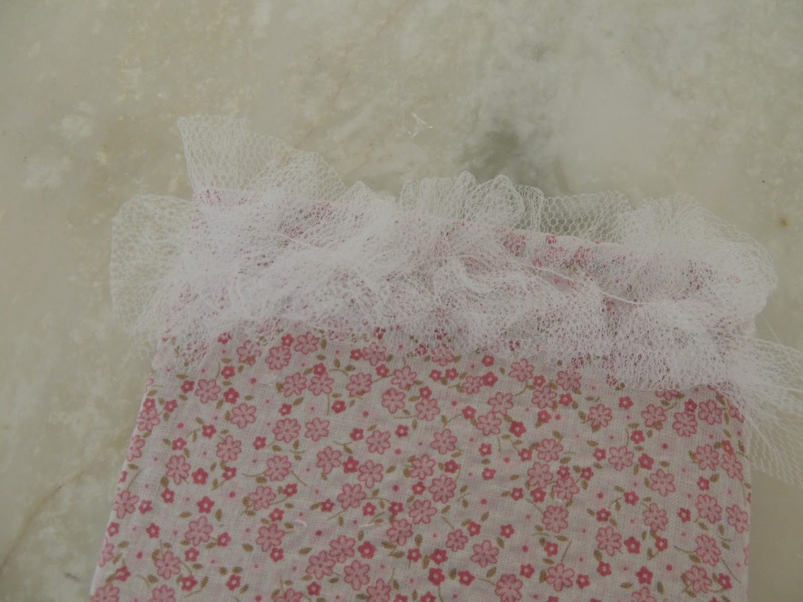 En la parte inferior, por dentro pegamos la tira de festón, para que nos quede ese efecto, de solamente el voladito.