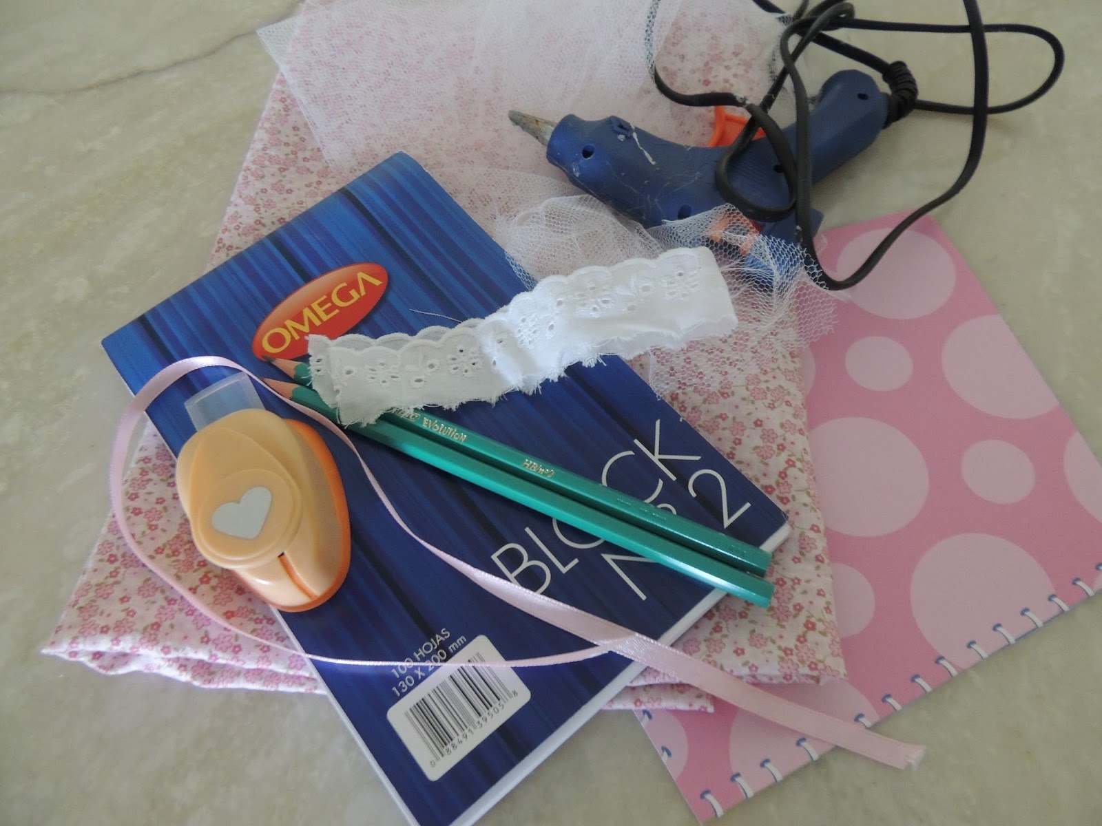 Renata eligió libretas para el colegio...con un toque romántico..Les cuento que muy fácil de hacer y sobretodo económico.