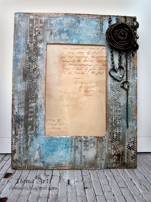 Bueno, hablando de scrap, tengo hechos unos cuantos proyectos desde hace tiempo pero nunca encuentro el momento para publicarlos. Así, pues, porqué no hacerlo hoy mismo? Este marco de fotos está hecho con la técnica de Mixed Media. Os acordais de la película "Matrix" con Keanu Reeves? Pues eso es lo que me sugiere al ver el marco. Y a vosotr@s?
