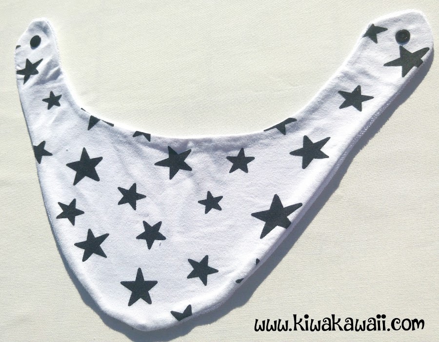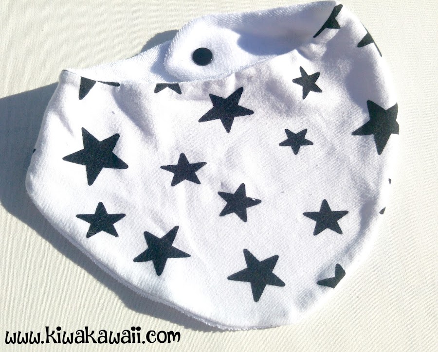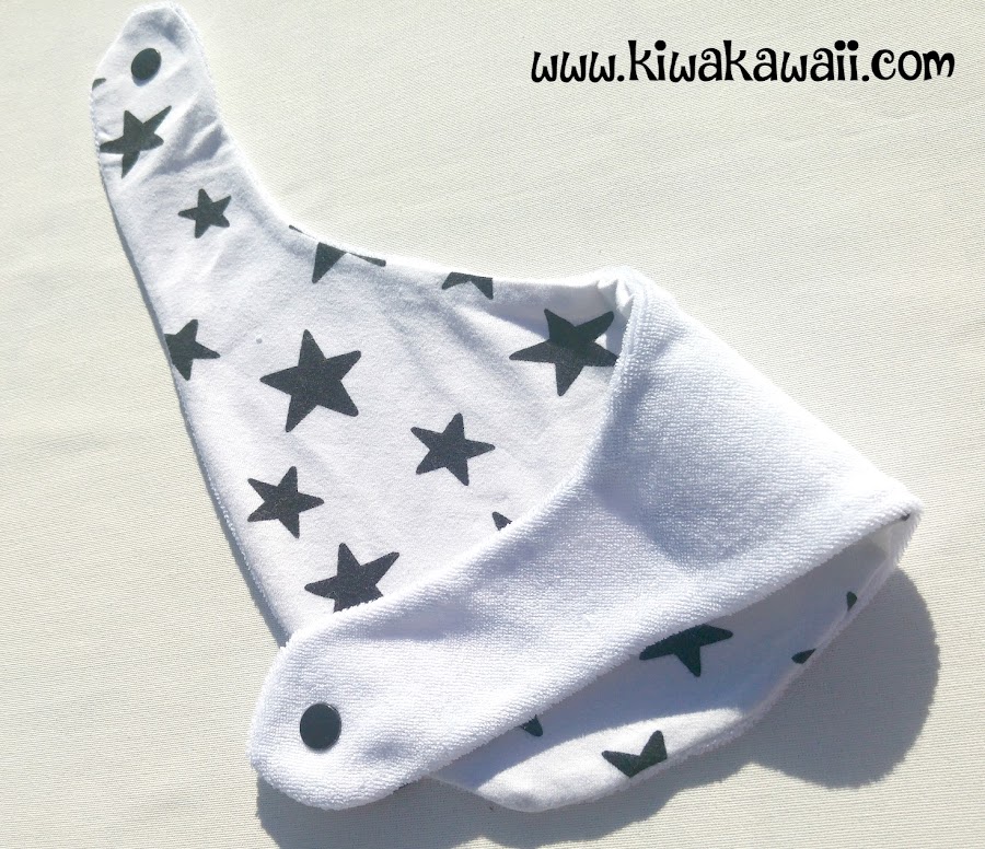 La bandana de estrellas es de camiseta con la parte trasera de microrizo, snap negro (recordad entretelar la zona del snap para poder ponerlo en telas elásticas).
