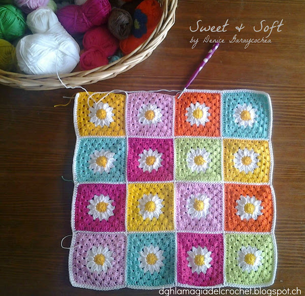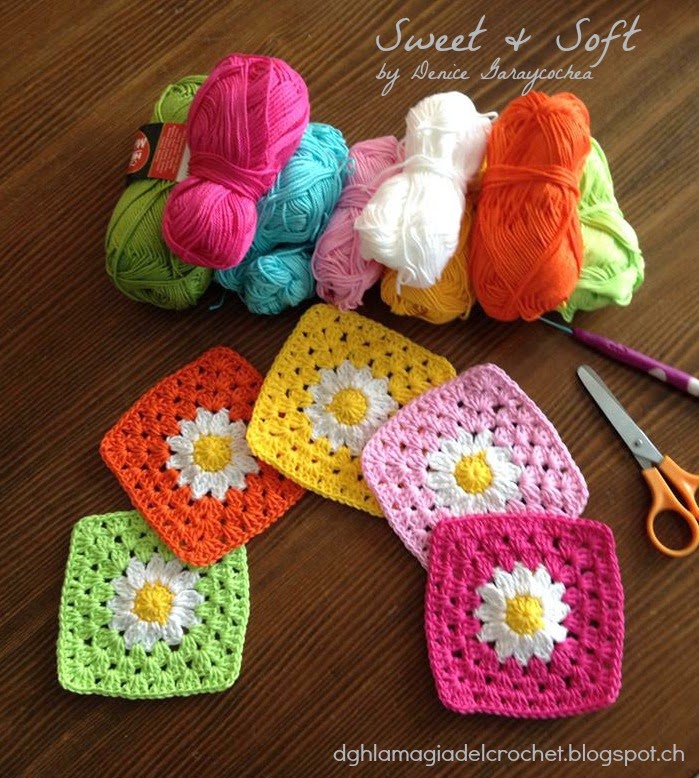 El tutorial de cada viernes, y hoy es el Granny Girasol, muy fácil de realizar, utilizando, anillo mágico, puntos medios, cadenas, y punto deslizado. Los Granny son muy versátiles, los podemos usar en muchas cosas lindas... mas abajo encontraran el video de cómo hacerlos y de cómo unirlos. VIDEO: COMO UNIR GRANNYS http://dghlamagiadelcrochet.blogspot.ch/