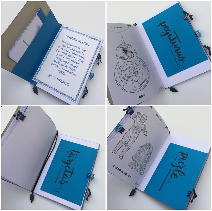 A cada uno le gusta una cosa, a unos le apasiona más que a otros, y a Marc le encanta Star Wars, además de pintar y dibujar... Así que mezclamos las dos cosas con su color favorito y preparamos un cuaderno creativo para que deje volar su imaginación...