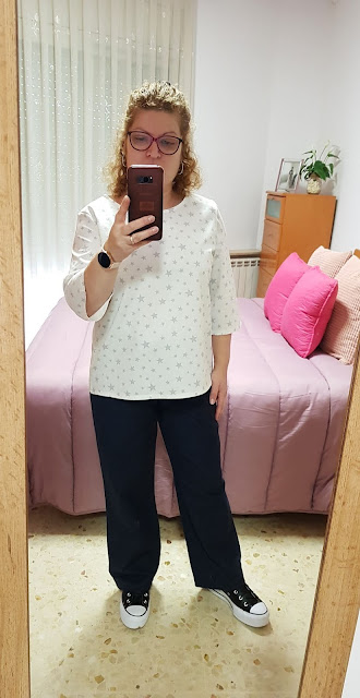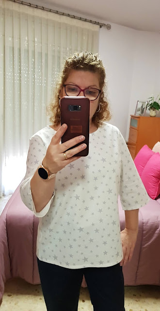 Hacía mucho tiempo que tenía ganas de tener una blusa o camisa con estampado de estrellas , no se porque pero me hacía gracia , hasta que por fin he encontrado el tejido ideal y co las estrellas que me gustan .