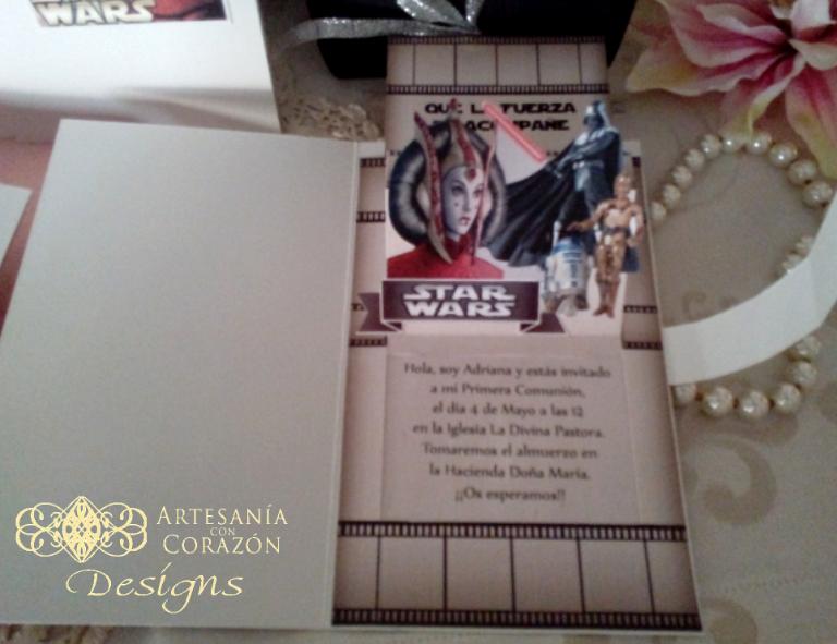 Este es el lema de nuestra querida Adriana para su Comunión. Inspirada en la muy afamada saga de StarWars, hemos confeccionado para ella un conjunto de lo más original: