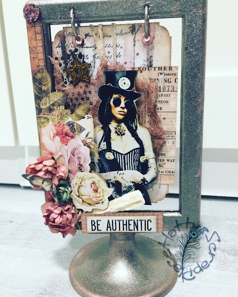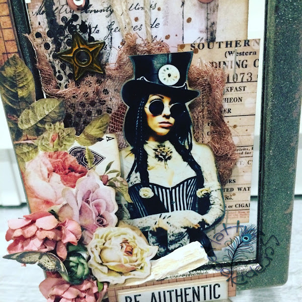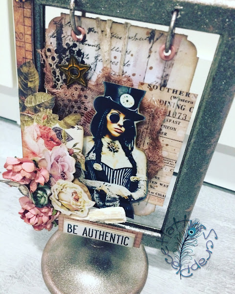 El título: "BE AUTHENTIC", nada más que añadir no?, un chipboard de Tim Holtz.Y así es como quedo.