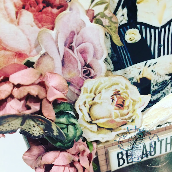 Luego cogí un papel de la colección Will + Free también de Prima y recorte una esquina que me parecía le quedaba bien, con unas flores, si lo se, estáis pensando a esta qué le pasa? jjajjaja pero me dio por ahí!