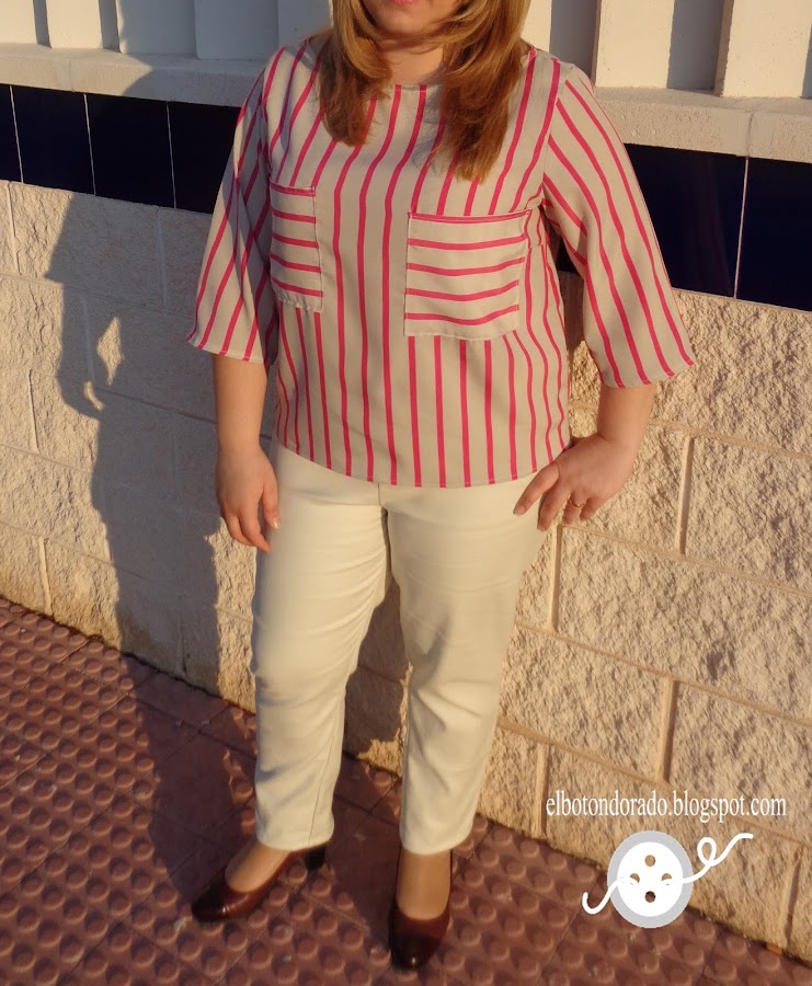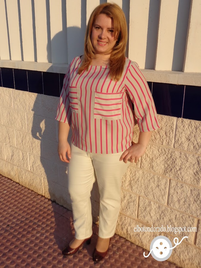 En cuanto al pantalón, es este modelo de Burda Style. Tengo que decir que me encanta este patrón!Tiene un ajuste perfecto y después de probar varios patrones de pantalones... definitivamente me quedo con este. Es sencillo, rápido de coser y sienta muy bien, es lo que estaba buscando.
