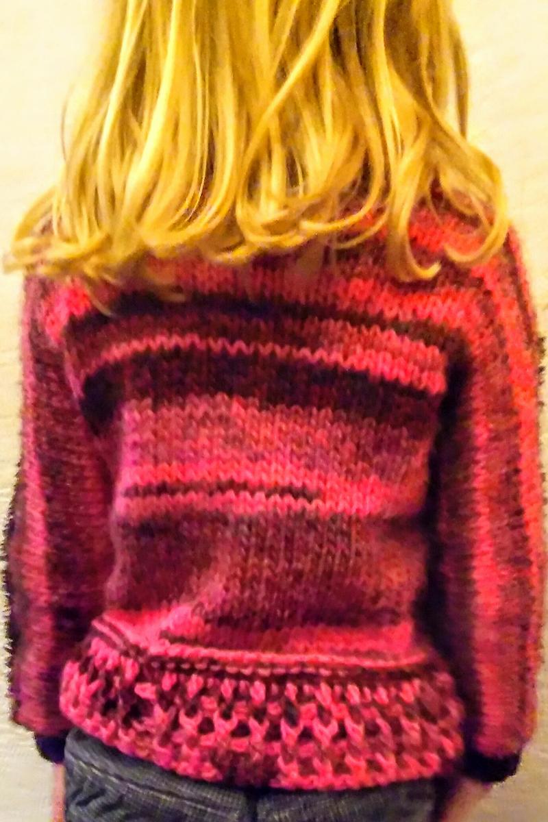 Todo está realizado con punto jersey menos el bajo del jersey que lo hice al final con punto elástico de ganchillo.