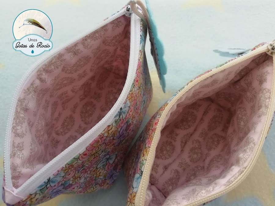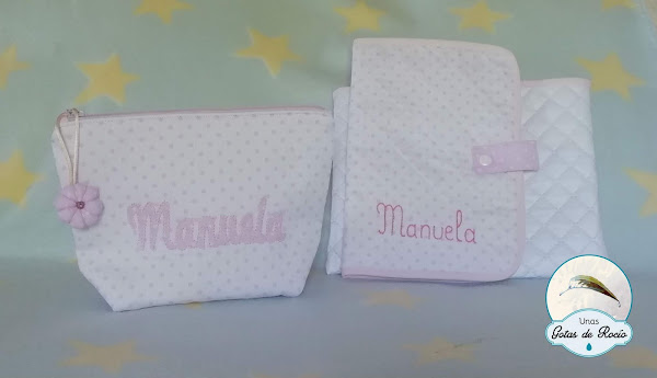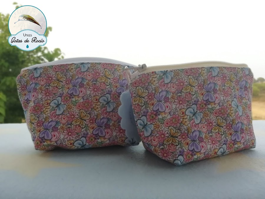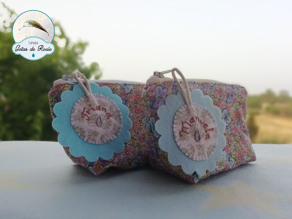 Y junto a este conjunto clásico y delicado, un par de mini neceser con una tela un poquito más animada pero igualmente delicada.