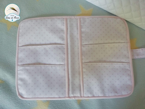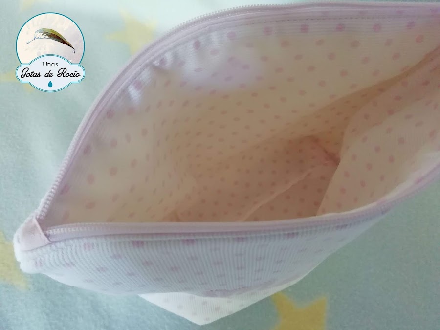Es un conjunto muy sencillo que combina tela blanca con lunaritos rosas y otra rosa con lunaritos blancos.