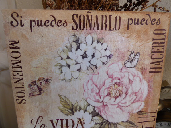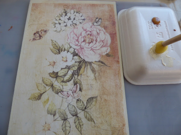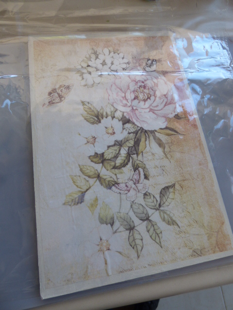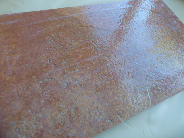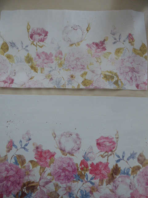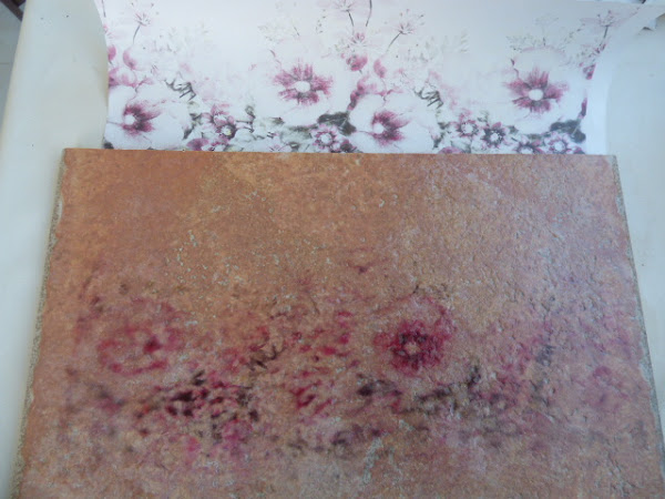 7--Aquí ya iba estando terminado......la madera a la derecha, tiene trasferido todo el estampado...el papel a la izquierda, ha quedado como más descolorido.....
