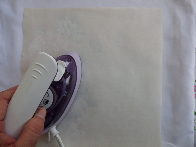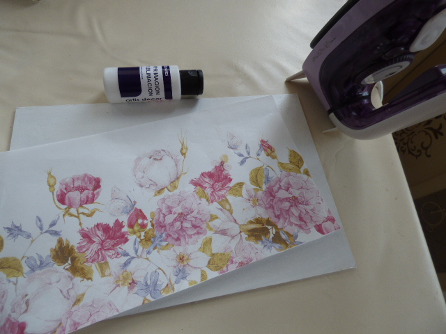Lo hice igual que en el caso anterior del cojin. Tela con un 80% minimo de poliester, papel y plancha.