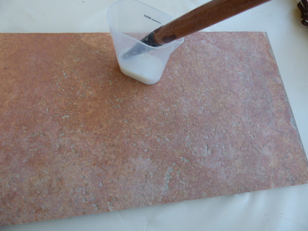 Bien limpia la baldosa, he extendido el liquido aguado, lo he secado y he puesto el papel para plancharlo durante unos minutos.