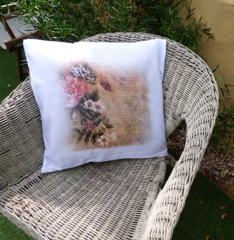 Una vez terminado el cojín, el papel quedó como veis en la foto de abajo. Desteñido, pero bien bonito¡ Eso yo no lo iba a tirar ni loca¡ Pensé intentar hacer con él un decoupage....así en vez de tirarlo se le podía dar otro uso diferente a sublimar....