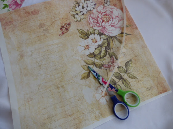 Escojo papel que voy a utilizar y en este caso como era el de cenefas, corto la lámina por la mitad para usar sólo la cenefa superior
