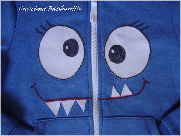 Mi hija se había enamorado de un jersey parecido pero no había su talla, así que, nos dispusimos a versionear. Y así quedó la sudadera monstruosa.