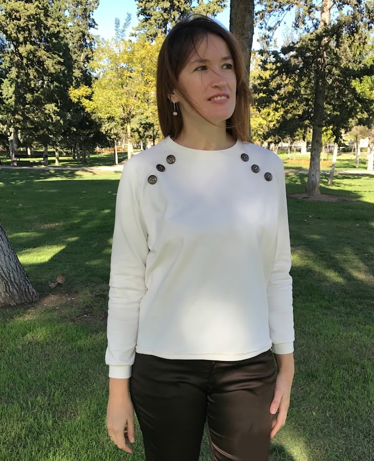 La sudadera que os enseño hoy es una prenda que he reformado. Sí, se trata de una que ya hice para el reto del año pasado de ¿Qué prendas necesito?, pero esta vez rehecha según un modelo de octubre de este año de la revista Burda Style...