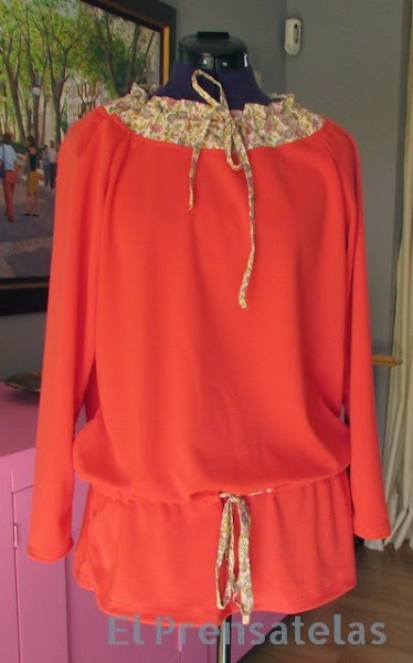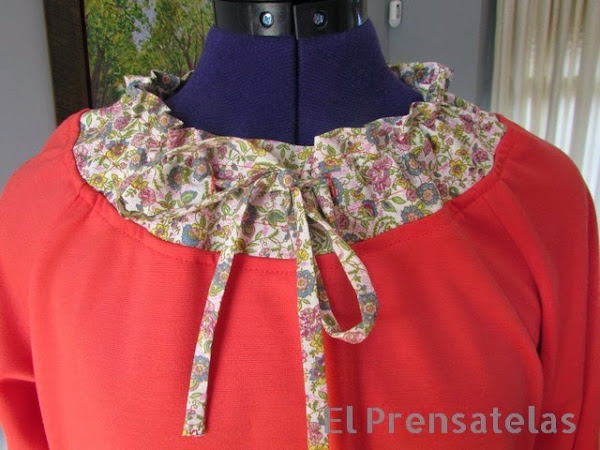 La forma del cuello es muy original, Buda recomendaba usar raso, aunque yo usé un resto de algodón. Pensé que a la hora de fruncirlo quedaría demasiado tieso pero la verdad es que queda muy mono: